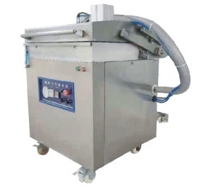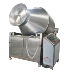 真空滚揉机是在真空状态下,利用物理冲击原理,让肉块或肉馅在滚筒内上下翻动,从而达到按摩、腌渍作用。腌渍液被肉充分地吸收,增强肉的结着力和保水性,提高产品弹性及出品率。本机采用不锈钢制作,结构合理、运行平稳、噪音小、性能可靠、操作简便、设备使用效率高。④贴体包装机