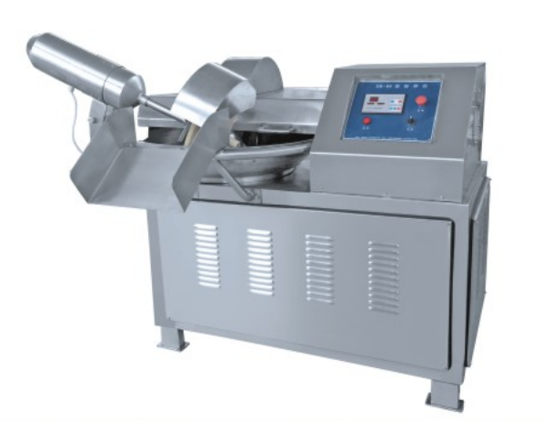 斩拌机利用斩刀高速旋转的斩切作用,将肉块、碎肉、脂肪等主要原料精细的斩切成肉馅或肉泥,同时将其它原料如水、冰片、辅料一起搅拌成均匀的乳状物。 斩刀高速旋转,可以缩短运行时间,减少物料发热量,保持馅料天然色泽、弹性、出品率和产品保质期。