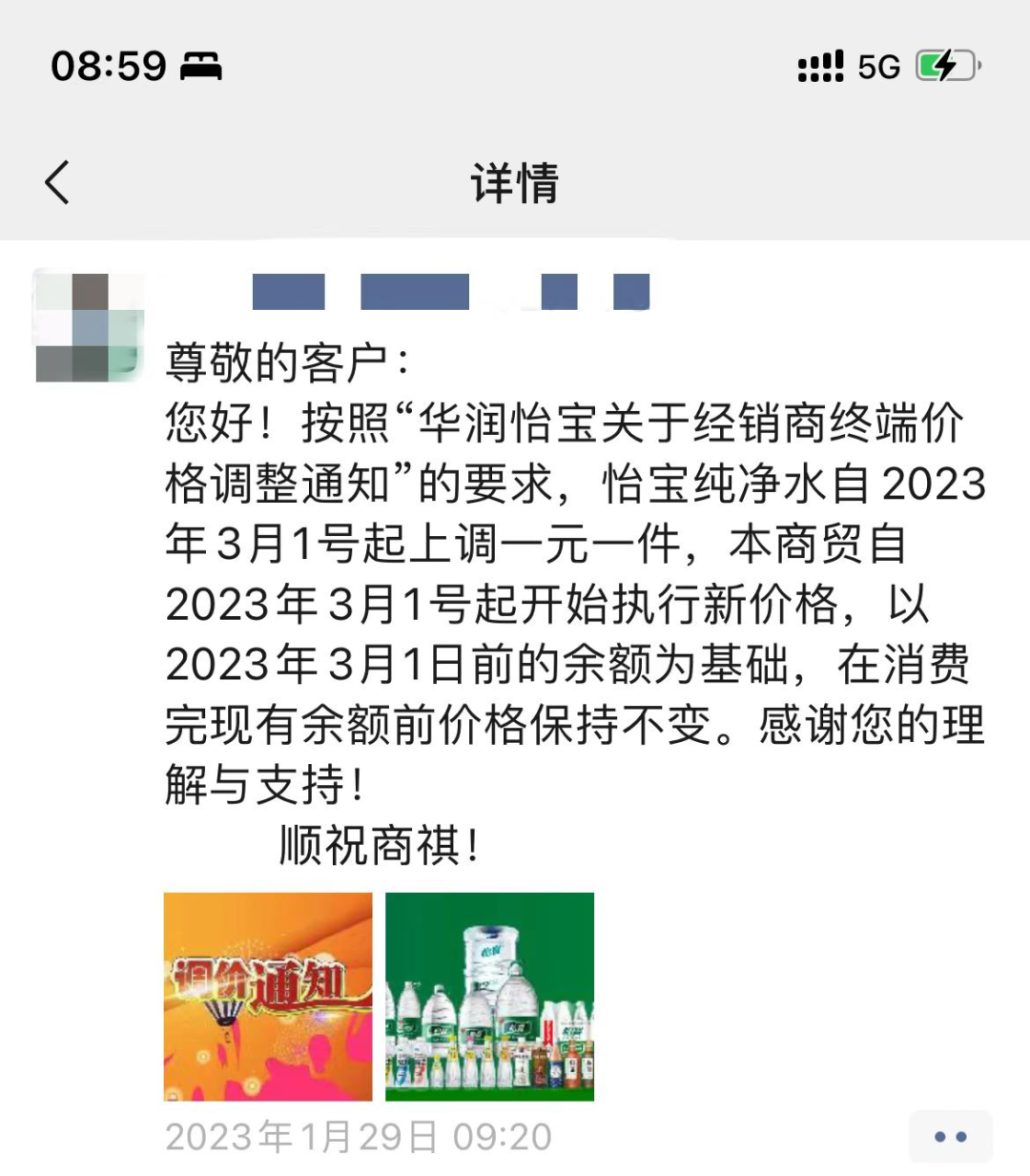近日,有经销商在朋友圈发布消息,称按照“华润怡宝关于经销商终端价格调整通知”,怡宝纯净水自2023年3月1日起,上调一元一件。相关的经销商已经开始逐步落实这一政策。