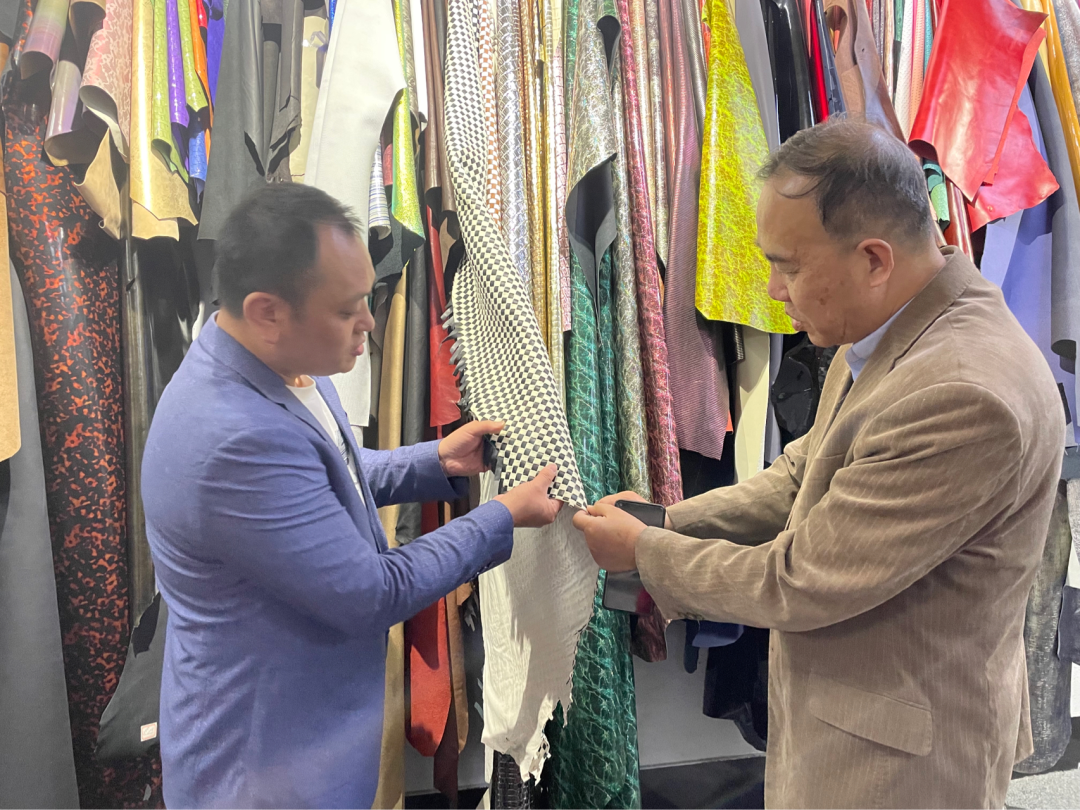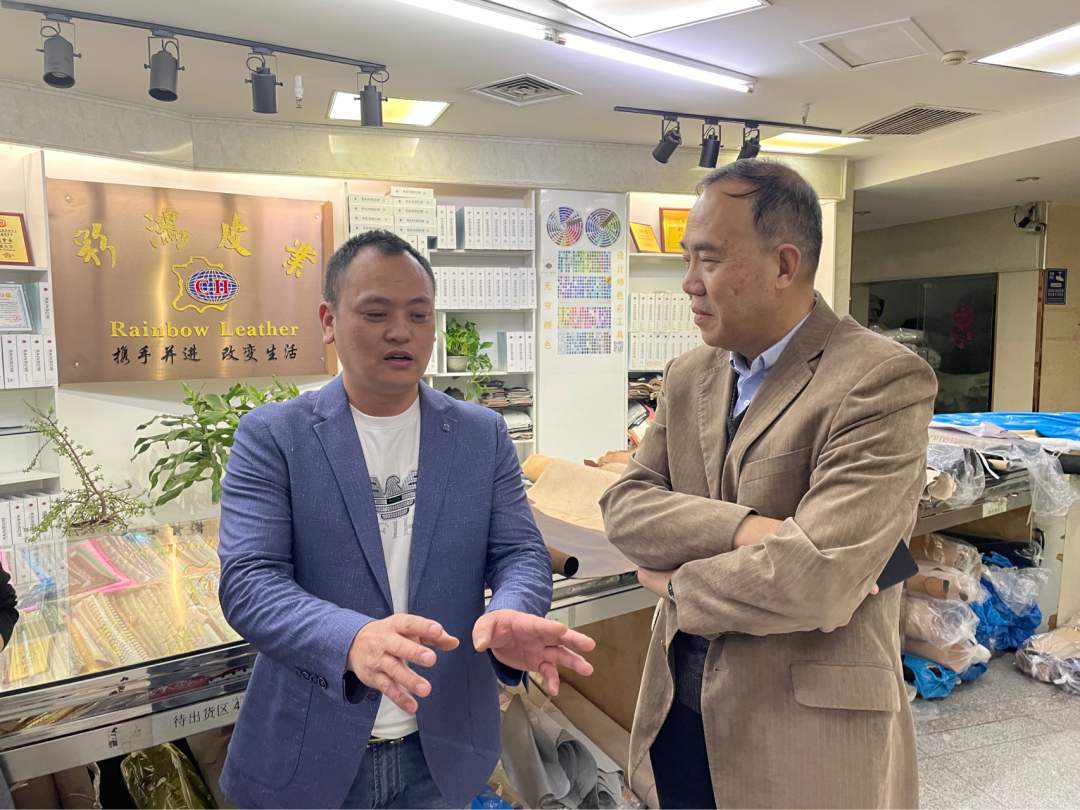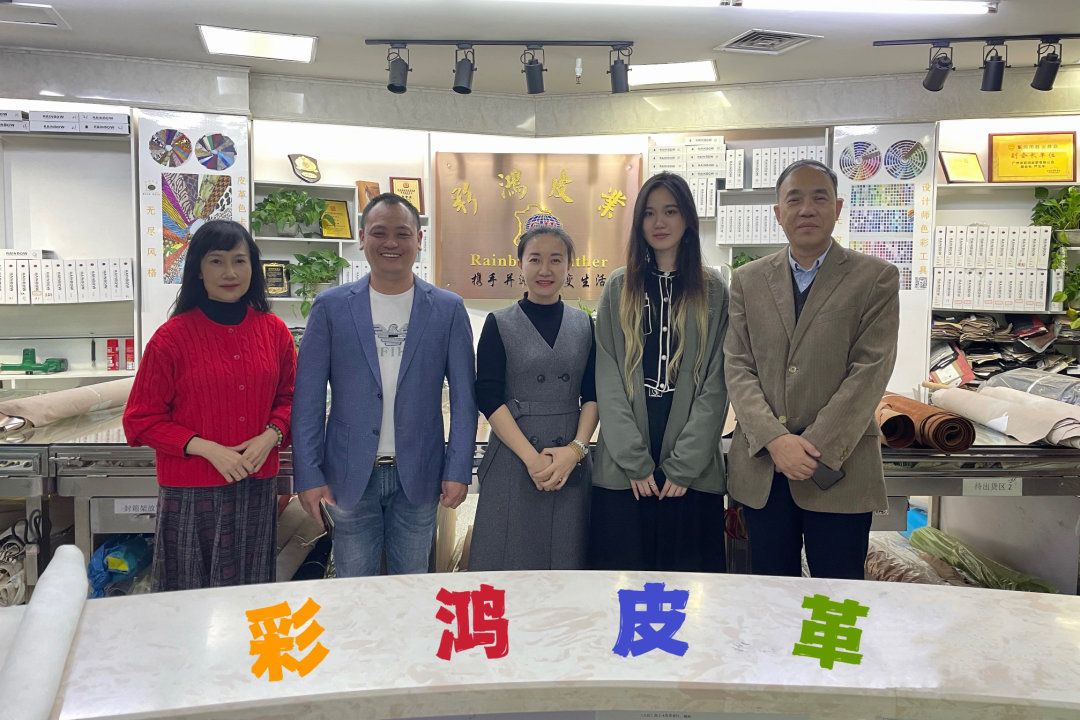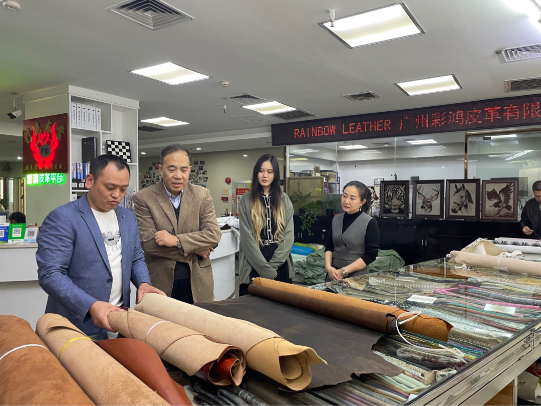 2月16日下午,广州市白云区鞋业皮具商会执行会长兼秘书长刘小虹、高级品牌运营顾问徐京诺一行代表商会,新春走访理事单位——广州市彩鸿皮革有限公司,受到董事长严兄平、总经理黎彩红的热情接待!大家就疫情管控放开后,行业发展、进出口贸易、以及会员企业之间的有效对接等方面,进行了友好交流与分享。