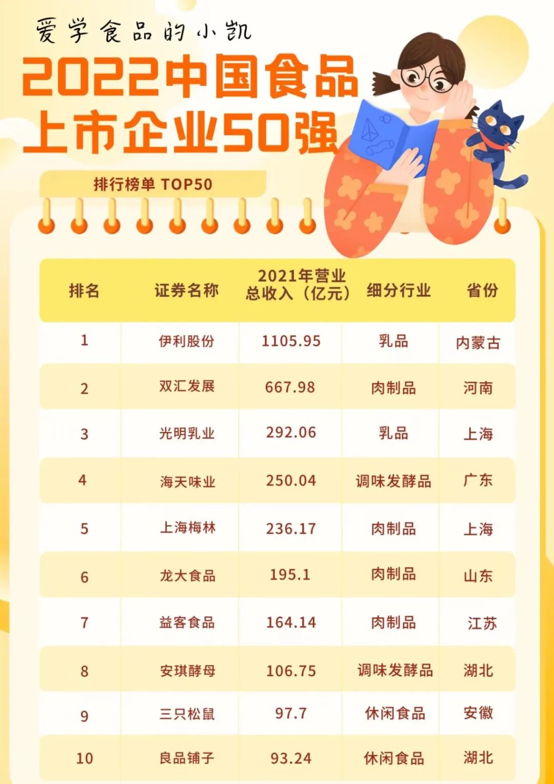 大家好,我是爱学食品的小凯,在思索了很久后,我觉得食品专业学生可能劝退的还有一部分原因是对食品企业的招聘,要求等不清楚,存在信息误差或缺失的问题。比如说个很简单的,身为食品专业的学生,你知道全国前50的食品上市企业有哪些吗?可能你看完这个帖子仍然很多都不认识,或者很多都只听过名字。