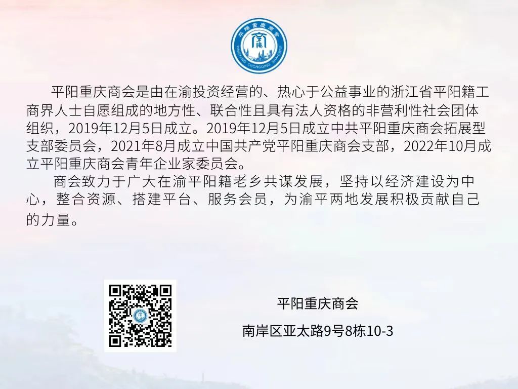2月14日至16日,政协第十六届平阳县委员会第二次会议在县城东文化中心隆重举行;2月15日至17日,平阳县第十七届人民代表大会第二次会议隆重举行,开启平阳发展历史新起点。平阳重庆商会会长黄克锁,执行会长周成西、倪力干,常务副会长毛昌良参加平阳“两会”。