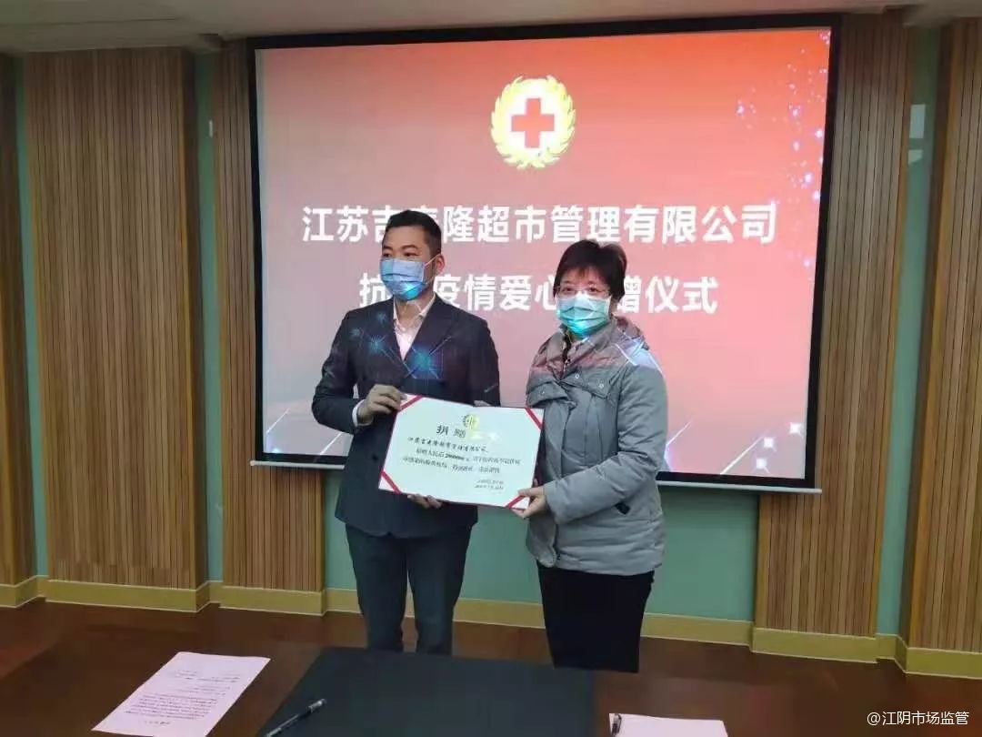 2月11日,由江阴琥珀食品有限公司通过江阴市食品安全行业协会向市场监督管理局定向捐赠八宝粥、黑米粥等物资共计200箱,用于慰问奋战在抗击疫情一线的市场监管战士。