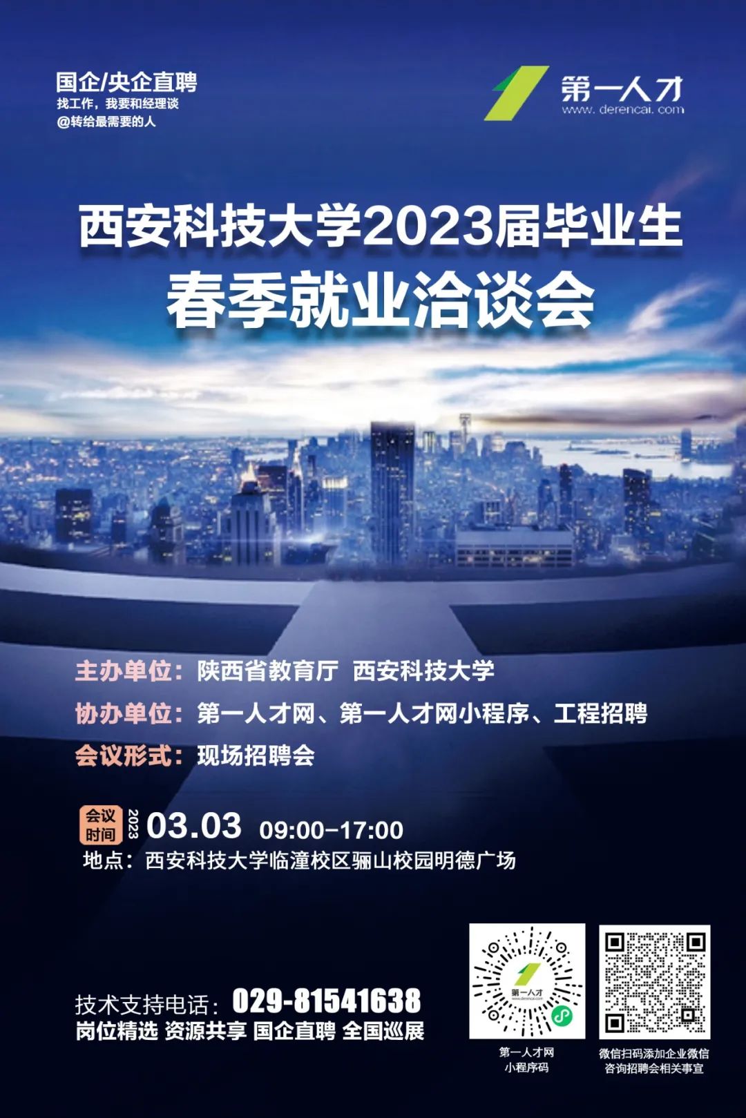 为了进一步做好2023届毕业生就业工作,持续推进毕业生充分高质量就业,西安科技大学定于2023年3月3日在临潼校区骊山校园举办“西安科技大学2023届毕业生春季就业洽谈会”,诚挚邀请企业前来招贤纳士,现将有关事项敬告如下: