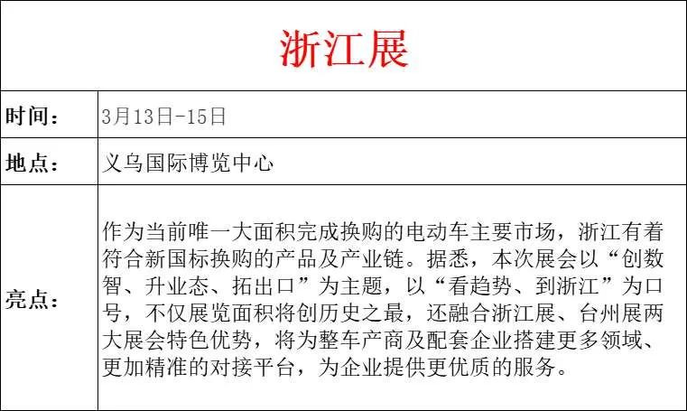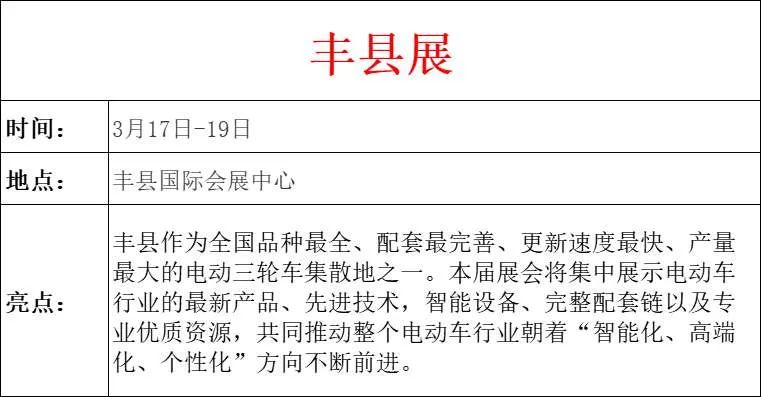 近三年来,因疫情反复,行业大量展会被迫延期或取消。2023年,随着疫情消散,各类经济活动复苏,电动车行业展会也将有序开展。为了提供最新信息,联盟特整理一份3月份展会清单供参考。