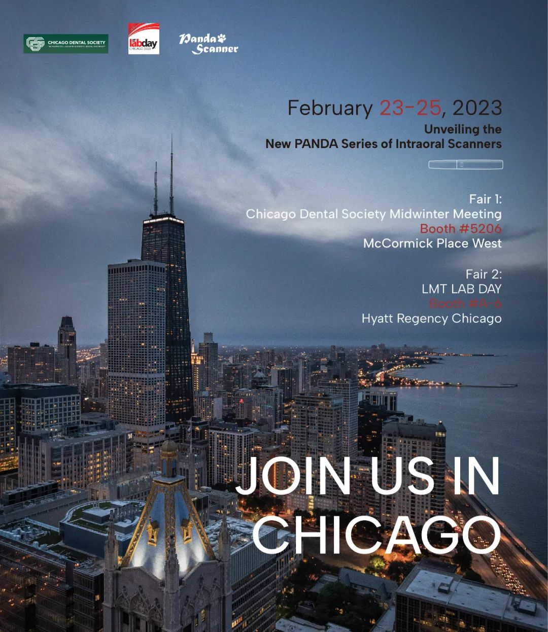 为期三天的第158届CDS Midwinter Meeting(芝加哥齿科协会冬至会议)和第39届北美牙科行业展会LMT LAB DAY(LMT实验室日)将于2023年2月23日至25日在美国芝加哥同时举办,届时频泰科技将携旗下PANDA 系列口腔数字印模仪出席两场展会。