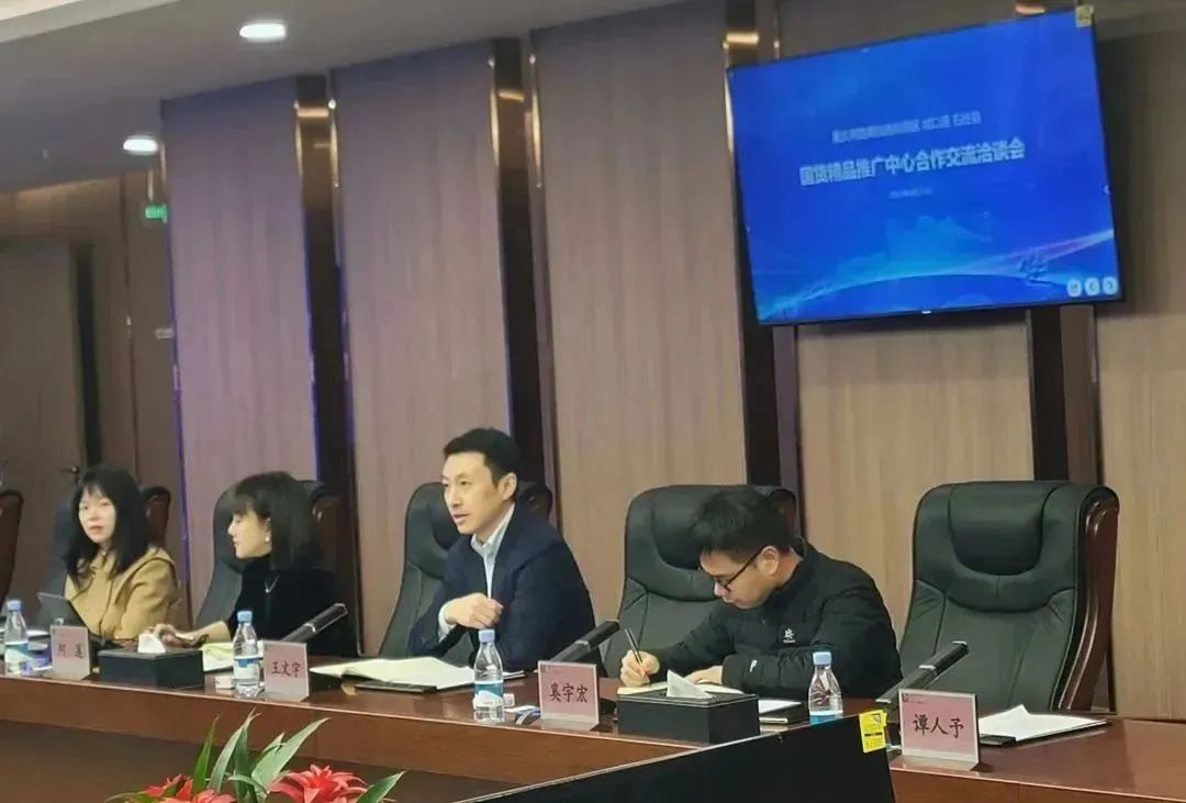 会上,王文宇同志介绍了重庆两路果园港综合保税区基本情况并播放了综保区宣传介绍视频,专项工作组详细讲解了国货精品推广中心项目平台及线下场馆设计方案等相关情况,城口县商务委、石柱县商务委分别介绍了城口、石柱相关产业情况。随后三方就国货精品推广中心深度合作相关事宜进行了交流沟通,宝地公司与城口县、石柱县达成合作意向。