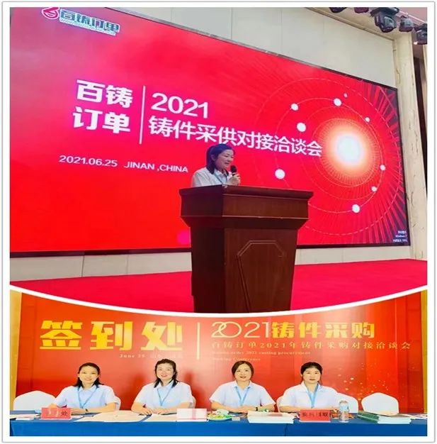 百铸订单2021年铸件采购洽谈会在山东济南召开,参会人数400人+,其中参会采购商100人,供应商300人+。参会采购商所涉领域:汽车配件、农业机械、 重型机械、工程机械、泵阀、液压传动、纺织机械、轨道交通、通用机械、民用机械、 机床工具等诸多领域。参会供应商铸件类:砂铸、精铸、压铸等工艺;铸铁、铸钢、有色合金等材质;汽车、泵阀、机床、船舶、工程机械、轨道交通、重型机械、矿山机械、纺织机械、印刷机械、通用机械;输变电类、石油化工类、五金工具类、液压传动类、市政工程类等行业铸件。配套类:铸造设备、材料、仪器、机加工企业及其他铸造相关服务机构。上午多家大型优质采供企业进行了采购说明和产品推介,详细介绍了订单采购需求和公司软硬件实力。下午采购商与供应商进行详细的面对面洽谈,会议取得了圆满成功。
