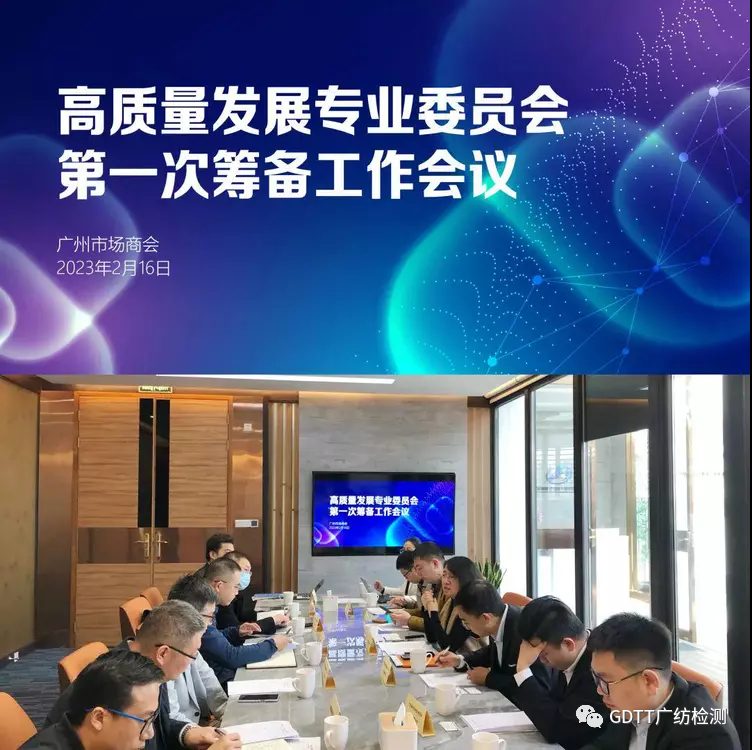 为贯彻落实广东省、广州市高质量发展大会精神,广州市场商会联合黄埔海关技术中心、广东广纺检测技术股份有限公司(以下简称广纺检测)等国内主流质量认证和检验检测机构于2月16日下午召开了高质量发展专业委员会第一次筹备工作座谈会议。 大会围绕建设行业标准体系,推动质量品牌双提升,助力高质量发展等主题展开讨论。会上大咖云集,就专业委员会的成立初衷达成共识:一方面提升国内市场的产品质量,助力企业打造核心竞争力;另一方面开拓海外市场,通过中国产品在国际市场的影响力,向国际输出中国的标准质量体系等问题深度对话。