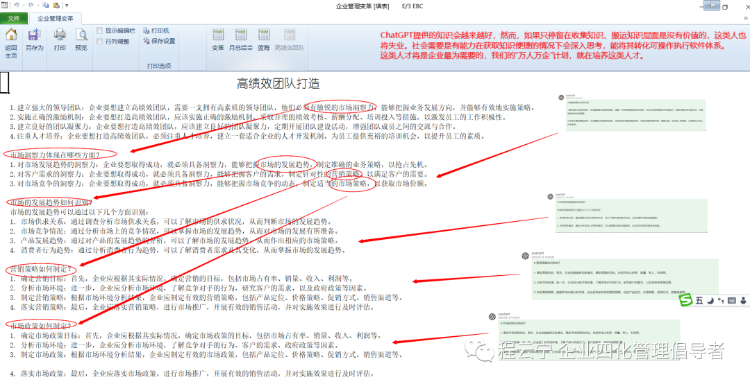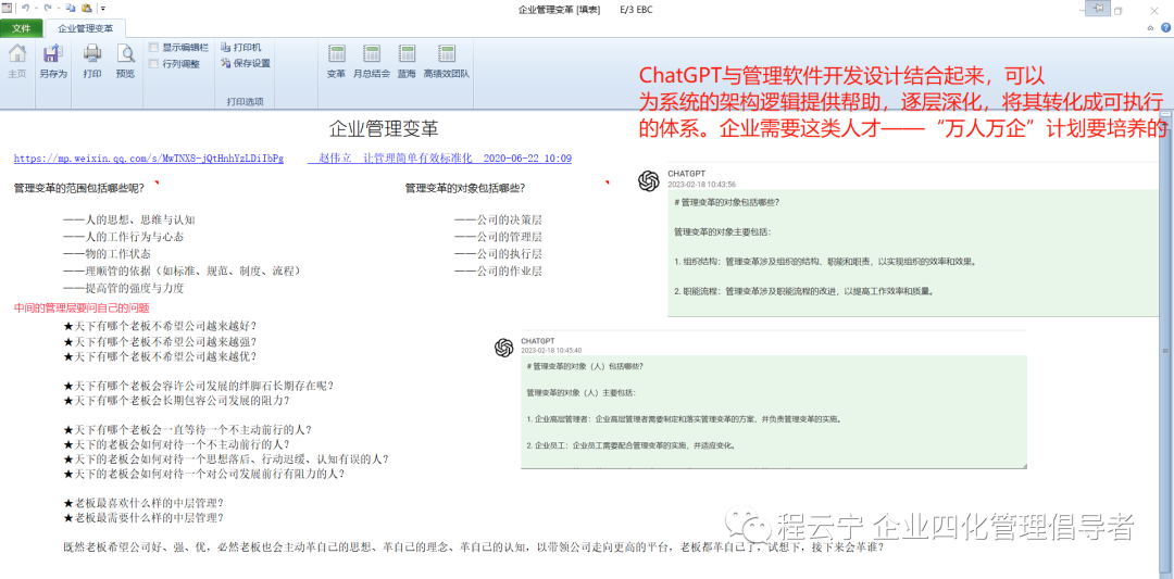 看到好的公众号文章会收集起来,深入分析后做些管理技术上的延伸,让其转化成可以执行的体系。再来对比ChatGPT,提出问题后也能快速得到相似的答案,这样就可以有更多的知识来源。
