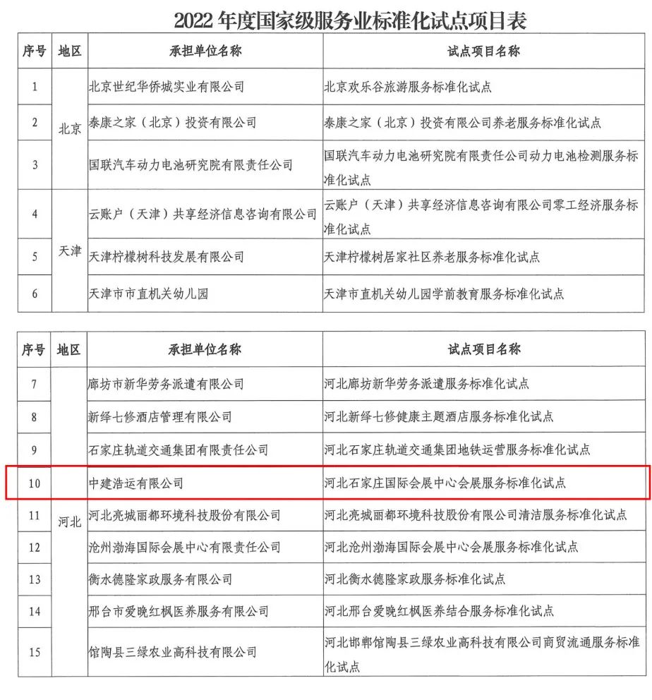 此次入选国家级服务业标准化试点项目,是中建浩运标准化服务体系多年实践成果的集中体现。中建浩运高度重视石家庄国际会展中心的服务标准化建设,参与国家《会展项目管理职业技能等级标准》编撰,承办河北省会展业标准化建设工作研讨会,将石家庄国际会展中心打造成为河北省推进京津冀一体化的标志性项目,在助推石家庄市及河北省会展业产业高质量发展中发挥了积极作用,并努力成为国家会展业标准化建设的倡导者、推动者、践行者。