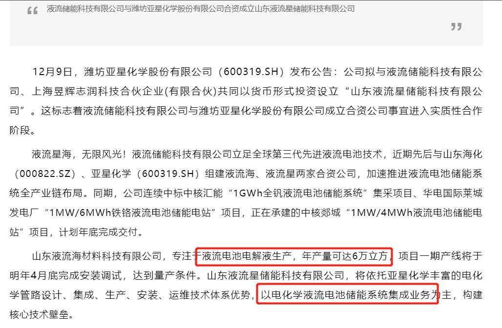 近日,有行业研报关注亚星化学与液流储能公司成立钒电池集成公司,看好亚星化学与液流储能公司储能业务发展前景。全文如下:一.信息汇总:
