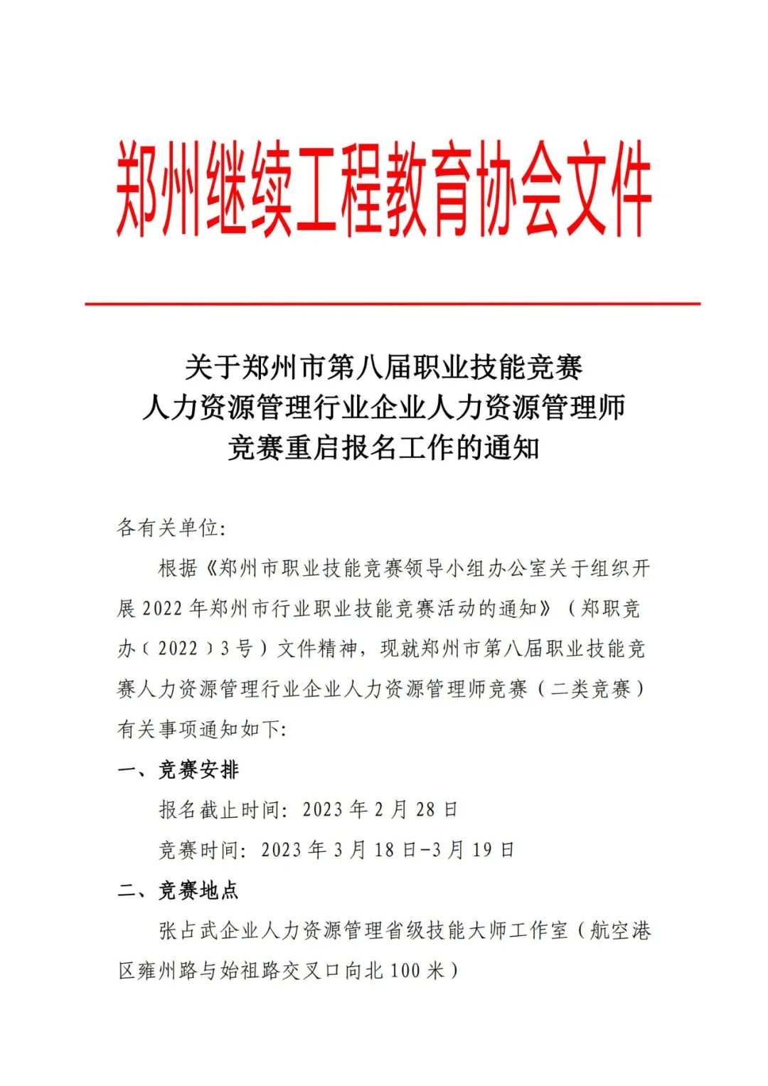 关于郑州市第八届职业技能竞赛人力资源管理行业企业人力资源管理师竞赛重启报名工作的通知
