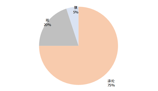 聚酯PET主要应用为聚酯瓶片、聚酯纤维以及聚酯薄膜三大块,其中聚酯纤维又分为涤纶长丝以及涤纶短纤,用量约占整个聚酯产量的75%,它们主要用于纺织业:聚酯瓶片的占比约为20%,主要用于食品饮料的包装;聚酯薄膜约占5%,主要用于外层材料,具有较好的印刷性。