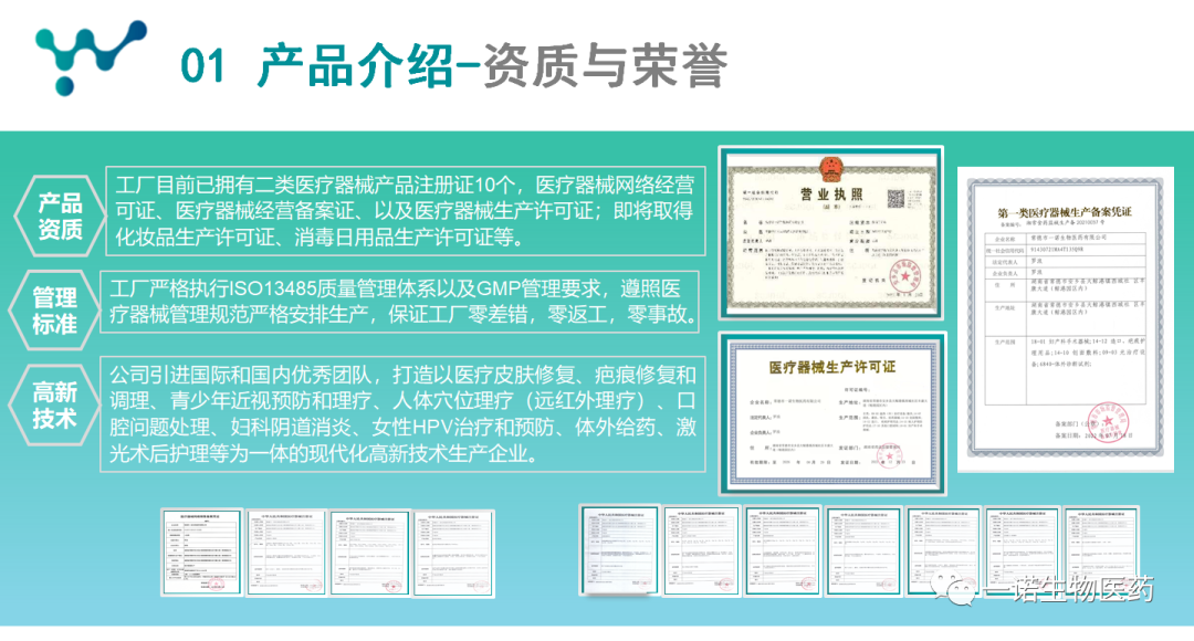 常德市一诺生物医药有限公司于2020年成立,2021年6月落户于毛主席笔下的江南盛境“北有安乡,南有新田”的常德市安乡县,工厂一期占地面积35亩,是一家集一、二、三类医用敷料、医疗耗材、护肤品、消毒用品、食品、保健品研发、生产、销售于一体的现代化生产型高新技术企业;2022年1月正式建成投产,日产单品5万件,并将联合上下游企业,全力打造以生物医药为主题的现代化生物医药产业集群中心,目前已和多家上市企业达成合作协议,且拥有多项发明专利、实用新型专利、国家非物质文化遗产、以及4项二类医疗器械产品的全国首创等技术成果。