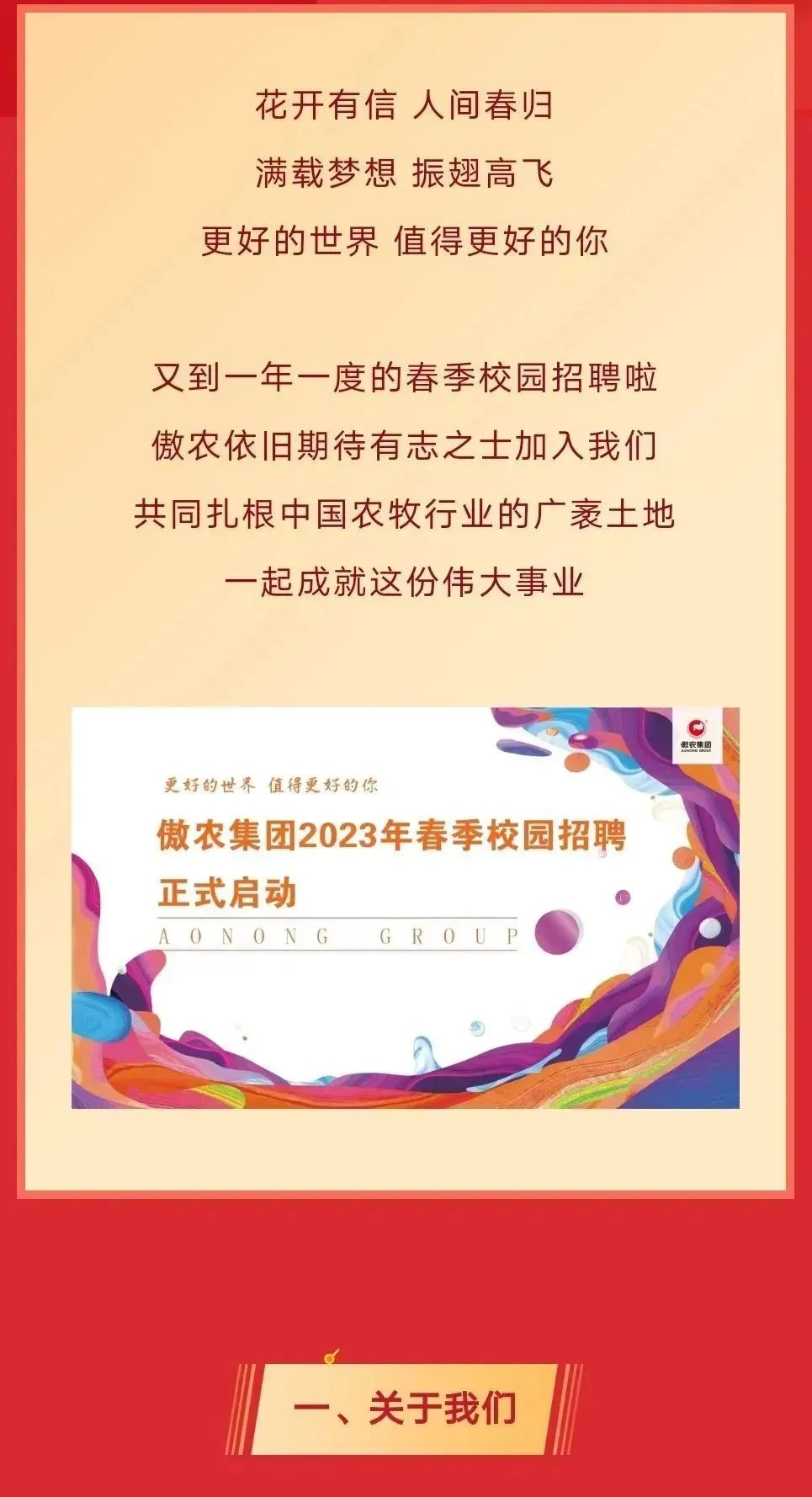 傲农集团2023届春季校园招聘正式启动!