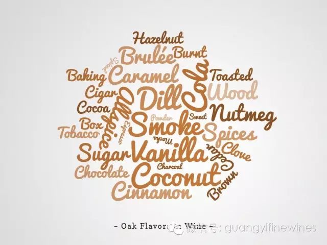 1,它为葡萄酒提供了多种香气,包括aromas of vanilla香草, clove丁香, smoke烟草 and coconut椰子肉。