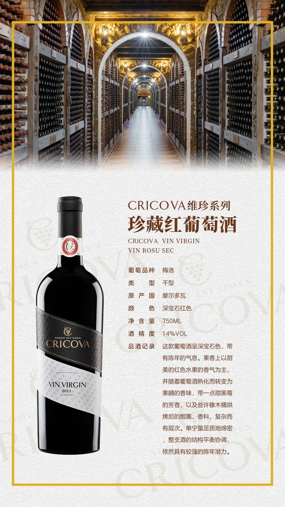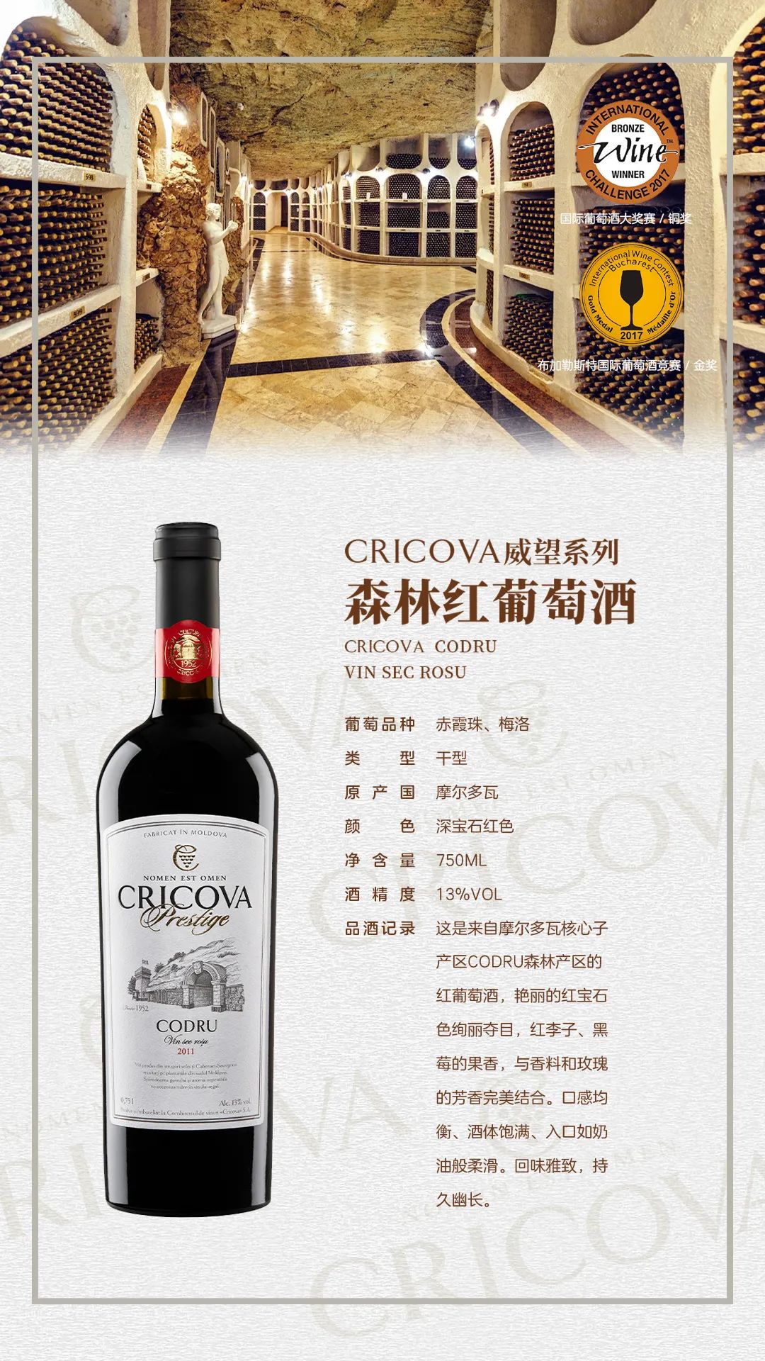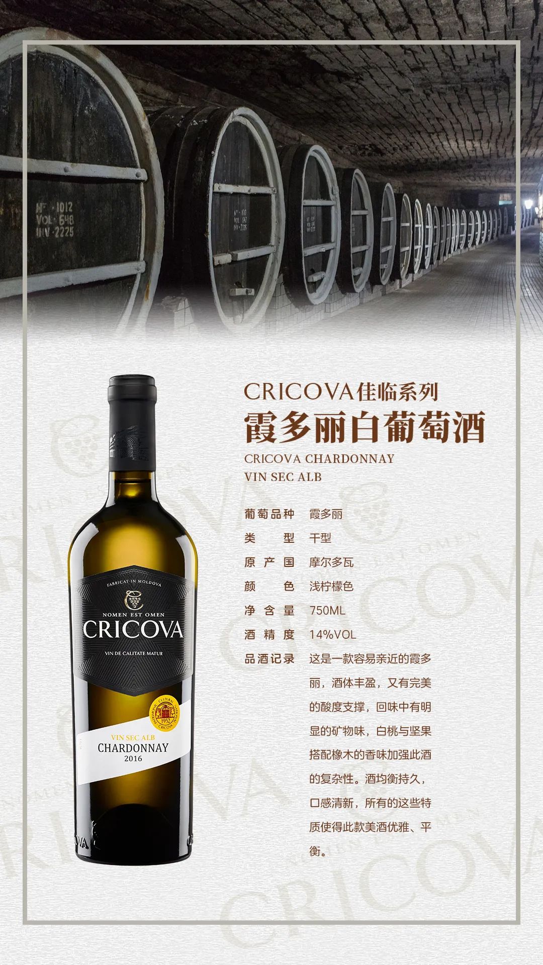 Cricova酒庄始建于1952年,位于摩尔多瓦中心地带,临近整个国家最具观赏价值的自然和历史景观——Codru森林自然保护区和老奥尔海伊考古遗址。酒庄不仅是摩尔多瓦首都基希讷乌的著名旅游景点,还被评为国家级自然文化遗产。Cricova出品的高端葡萄酒是摩尔多瓦葡萄酒的名片,在世界葡萄酒圈中享有盛誉。