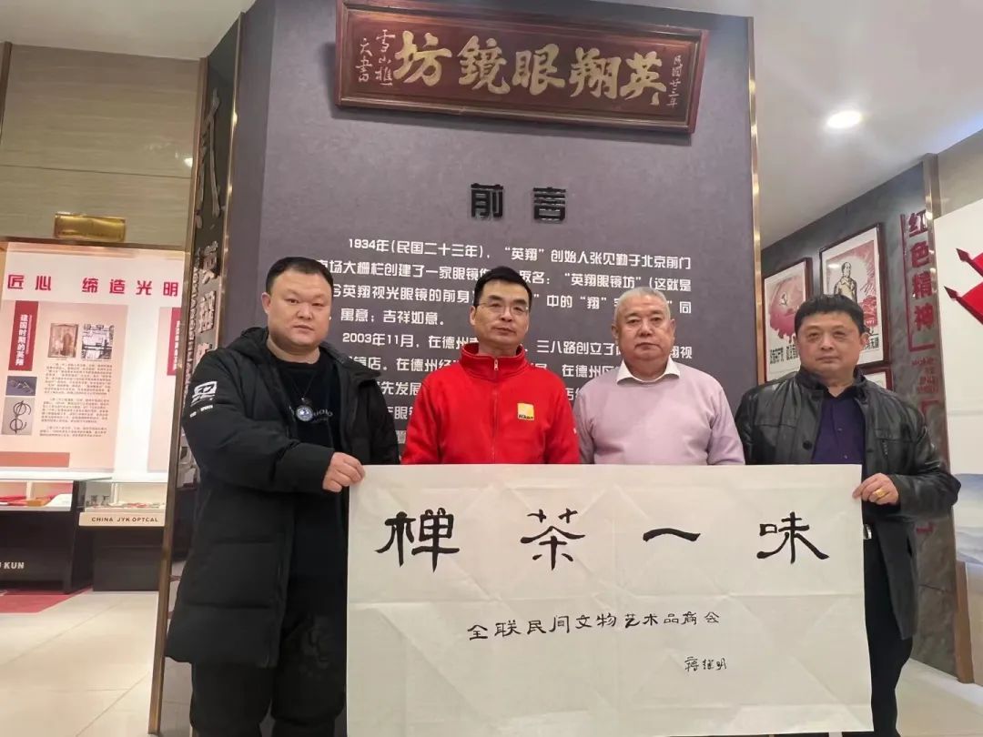 2月18日上午,来德参加大运河国家公园(德州)论坛的重要嘉宾,全国工商联民间文物艺术品商会蒋继明会长一行,莅临中国英翔眼镜文博物馆参观调研。