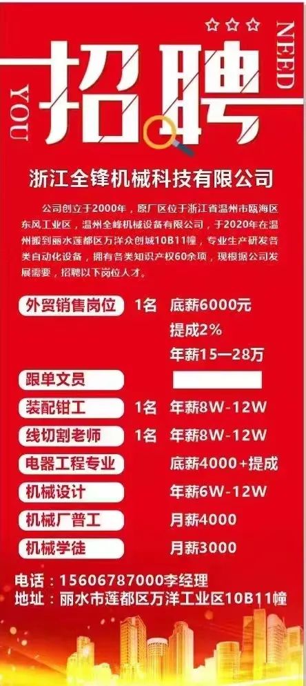 浙江全锋机械科技有限公司招聘