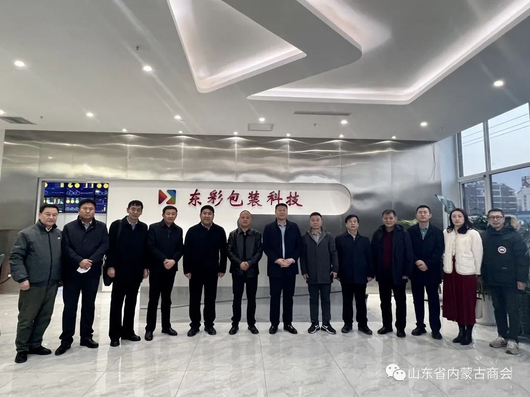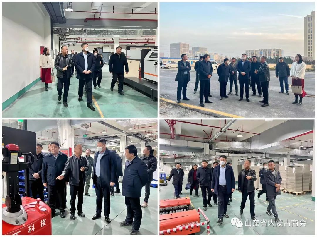 韩志业一行在韩振涛等的陪同下,参观了会长企业——青岛东彩包装科技有限公司和内蒙古(山东)会客厅在建项目,对东彩包装的智能化生产线给予了高度赞赏。