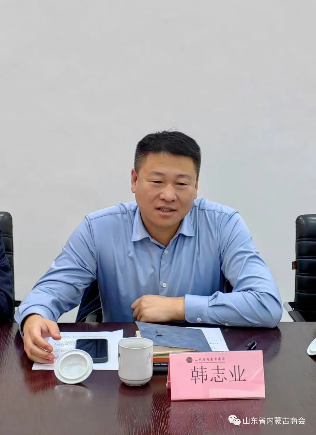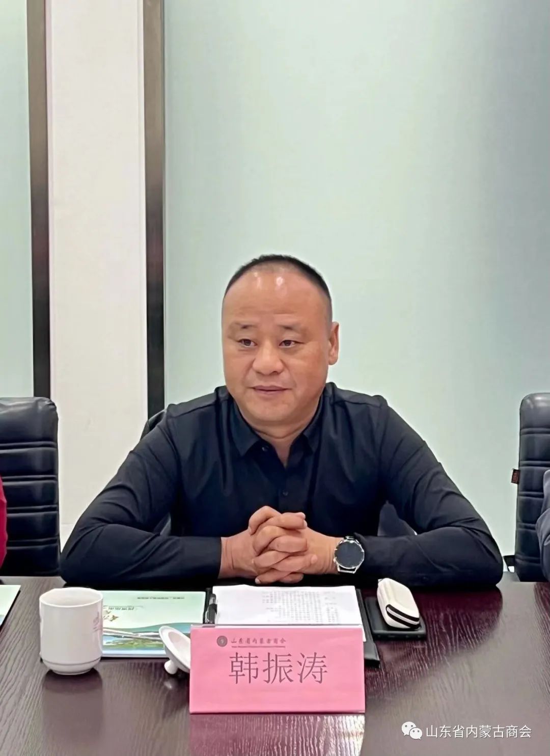 韩振涛介绍了商会的基本情况和发展历程,并充分了解了杭锦后旗的招商意向。他表示,杭锦后旗地理位置优越、农业资源富集、招商政策优良,像“陕坝味道”等当地优质品牌更是家喻户晓。山东省内蒙古商会自成立以来,始终心系家乡,时刻关注家乡发展,以实际行动为家乡各项事业发展添砖加瓦。下一步,商会将根据杭锦后旗的招商需求,发挥好人脉广、资源多、信息灵的优势,进行资源整合、精准对接,助力杭锦后旗实现招商引资工作的新突破,动员更多有实力的企业回乡考察、投资兴业,共同为家乡的经济发展贡献力量。