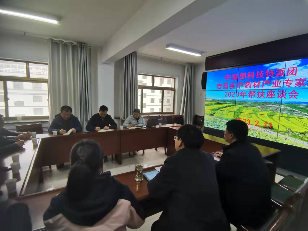 为了更好的完成今年的帮扶计划,专家组一行和农业农村局等相关单位举行了工作座谈会。座谈会由县委人才办冉海燕主任主持,会上农业农村局副局长申俊忠介绍了我县中药材产业主要短板和科技需求,县直相关部门负责人对科技帮扶工作从不同侧面发表了意见和建议。科技特派团的各位专家、教授针对宕昌中药材产业技术需求和我县专业技术人员、合作社负责人进行了交流。特派团中药材产业组组长王惠珍教授表示,今年主要在野生淫羊藿驯化、中药材种子种苗繁育、中药材GAP基地建设、当归早期抽薹防治、重茬连作障碍技术攻关、中药材深加工、技术培训等方面落实帮扶责任,确保科技特派团帮扶工作落到实处、取得实效。史彦斌教授介绍了科技特派团“陇南特色五味中药材规范化种植及新产品研发项目”,准备在我县建成400亩中药材规范化种植基地。