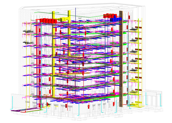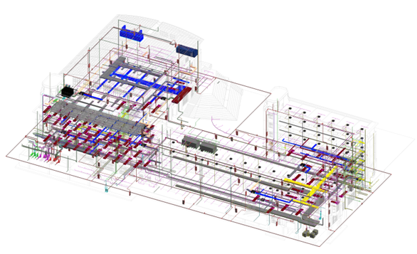 本工程应用BIM技术提高深化设计的质量和效率,协调项目各方信息的整合,提高项目信息传递的有效性和准确性,提高施工质量,减少图纸中错漏碰缺的发生,使设计图纸符合施工要求,并能进一步辅助施工管理,达到管理升级、降本增效、节约时间的目的。