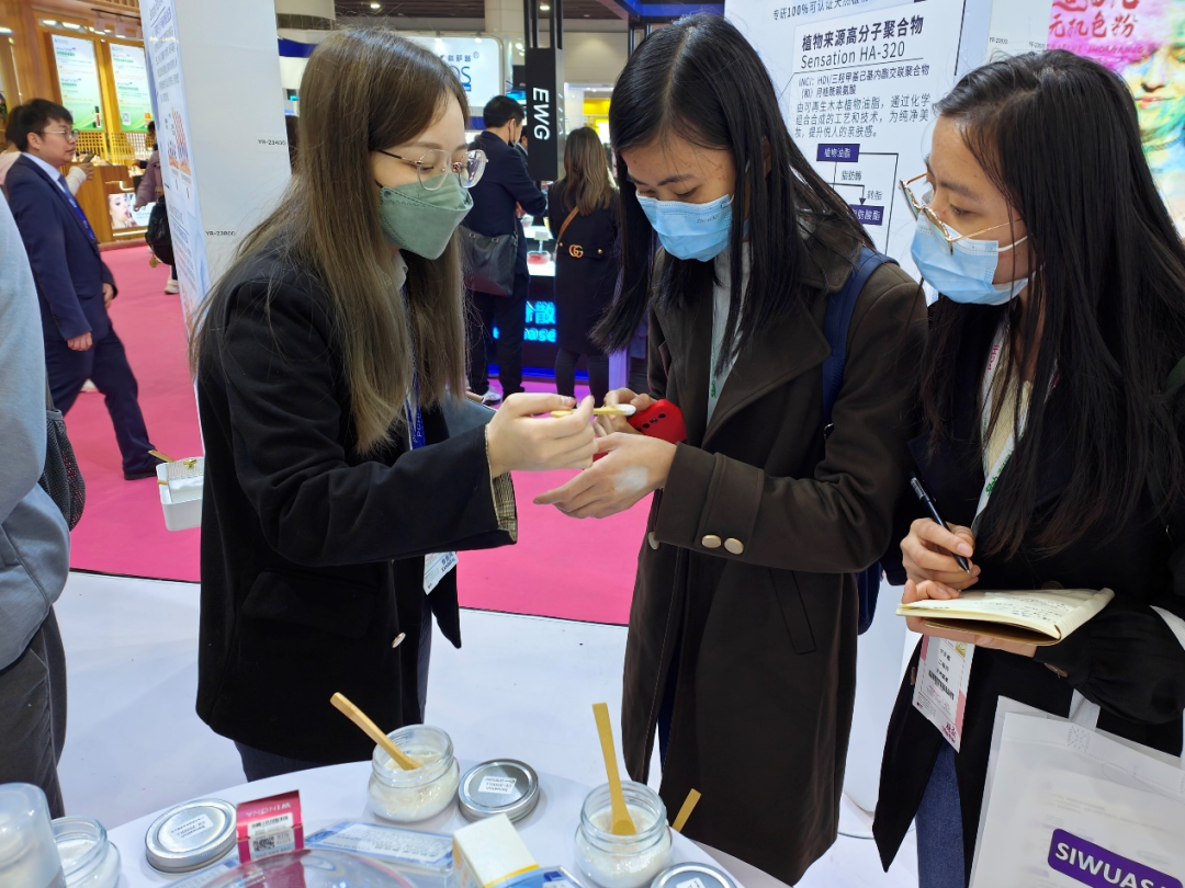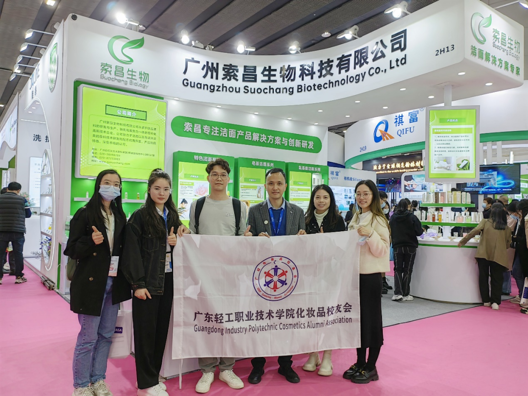 借此活动契机,广东轻院化妆品校友会秘书处的秘书长张静茵师姐携秘书处的小伙伴们一起走访了我们部分校友企业的展位,进行参观交流学习。多位优秀的校友向我们展示了各自所在企业的特色主推产品,并与我们进行了深入的介绍和交流。以下是我们今天走访的企业及其主推产品的内容介绍,排名不分先后。