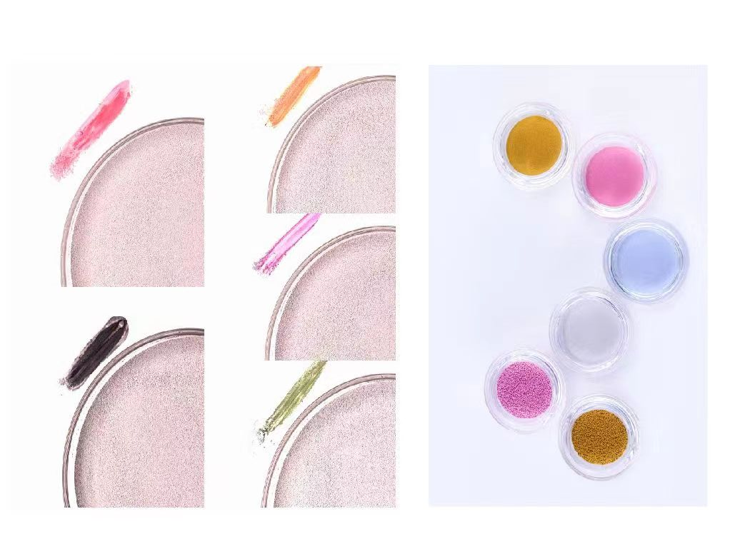 变色粒子是高浓缩颜料的微胶囊,内部的颜色被外部的颜色有效地覆盖。当我们将它涂散在皮肤上时,内部的色素就会显露出来,并与外部色素混合,在皮肤上呈现出新的颜色。粒子内部和外部的色素均可以调整,而且它还可以包裹一些活性成分到粒子中。根据不同的生产方式,变色粒子共有2种不同的类型: 变色粒子BS型和BEC型。