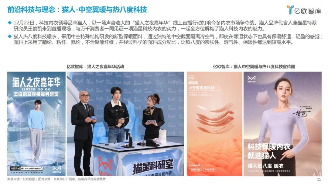 2022年12月,国产品牌继续宣布羽绒面料或保暖科技。猫人通过直播与观众见证中空翼暖与热八度科技,巴拉-泡芙羽绒系列和Care-Fit多功能防护羽绒系列。