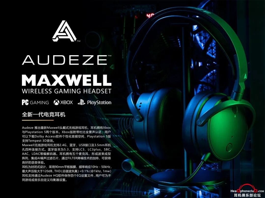 Audeze推出最新Maxwell头戴式无线游戏耳机,耳机拥有Xbox与PS/PC两个版本。Xbox版附带杜比全景声认证,用户可以下载Dolby Access软件个性化音频空间,Playstation版支持Tempest 3D音效。