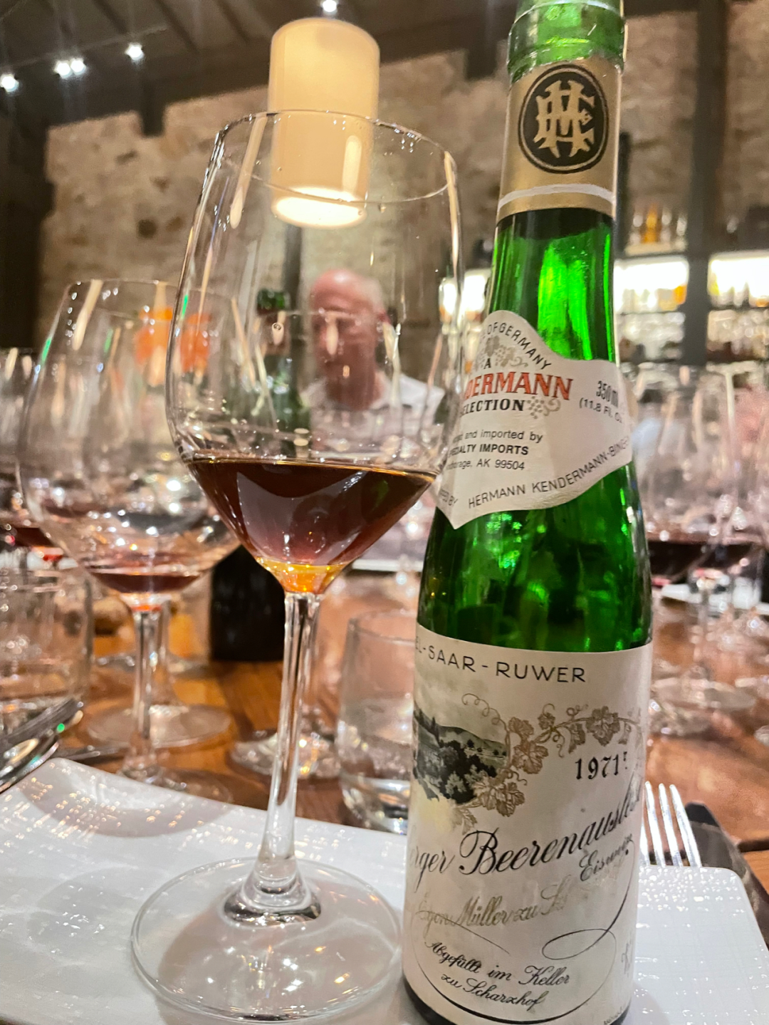 除了我给了?的这五支,还有两支也是很有意思的酒。1971 Egon muller eiswein,mosel的传奇年份!我虽然对喝甜白不是特别的感兴趣,但这支展现的集中度和来自酸度的力量感都是惊人的。我还有一支同年的Egon muller TBA,太贵了,没舍得开。
