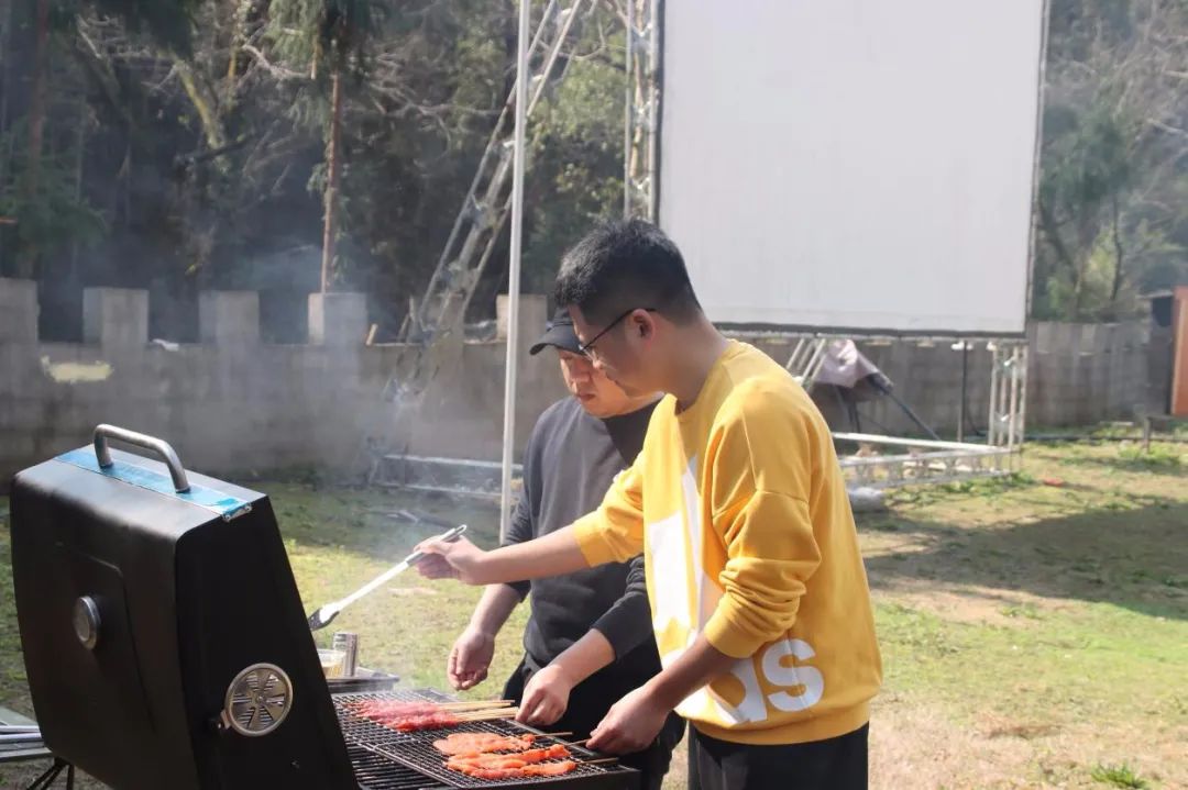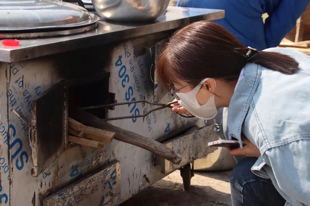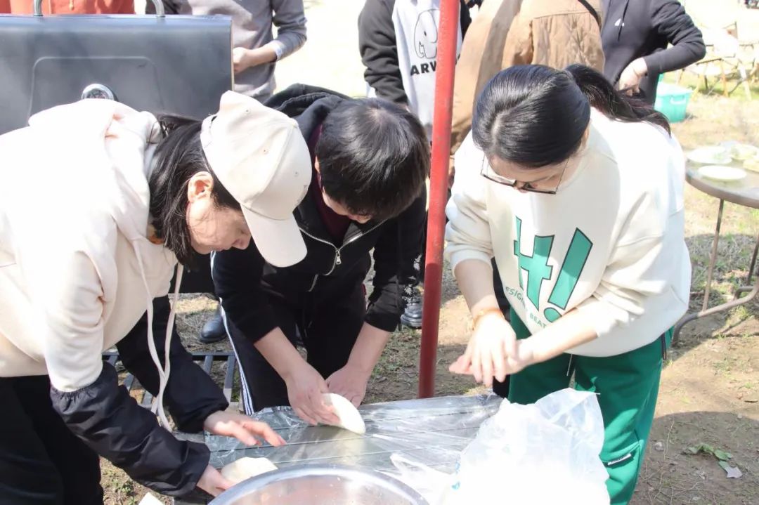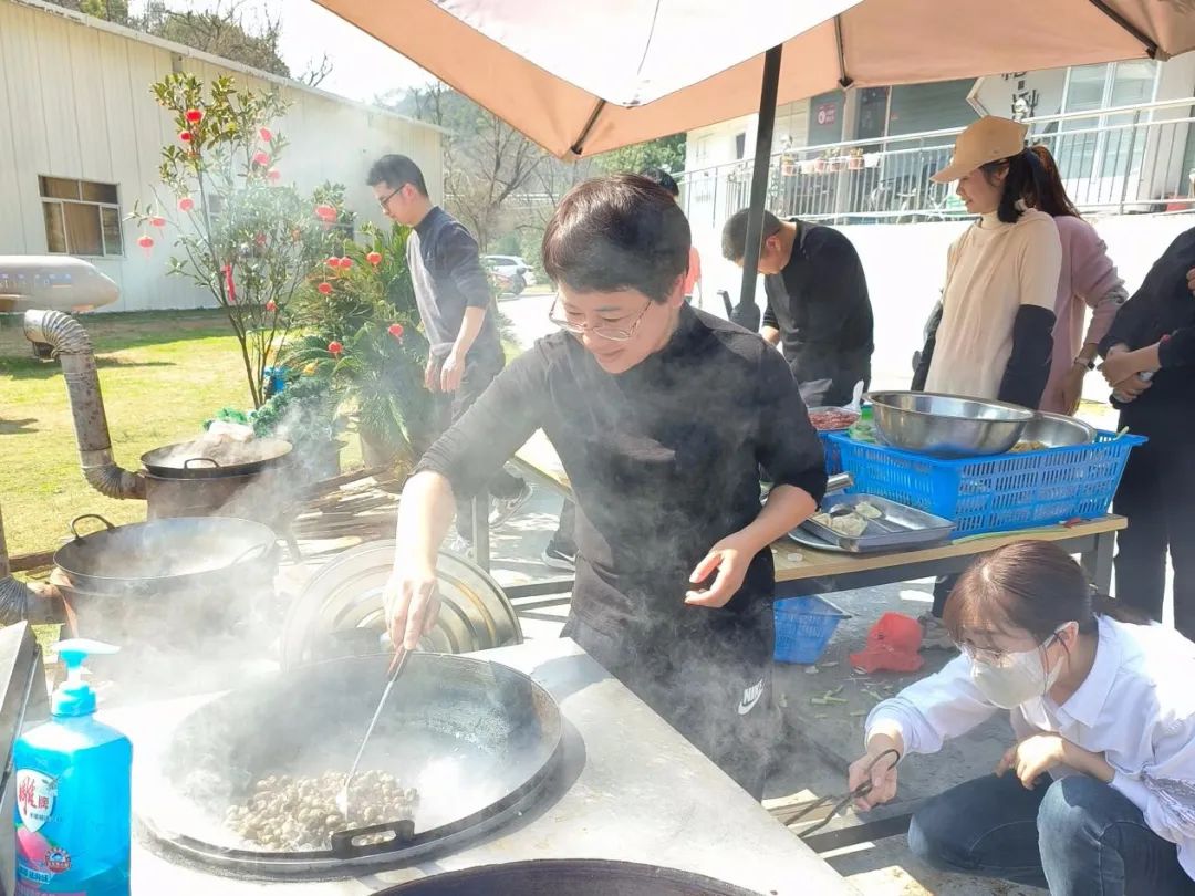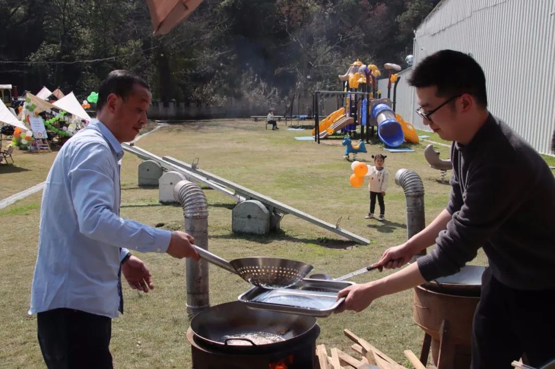 此时各个灶台前的“大厨们”是绝对的C位,时不时“炫技”引来阵阵尖叫,吸引了各个组前来观摩打卡。阳光与炊烟相互交织,锅碗的碰撞声与大家的欢笑声互相交融。