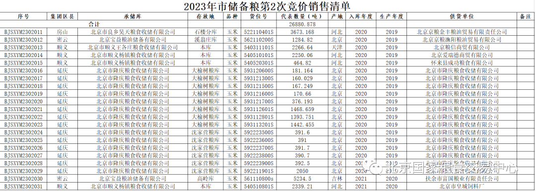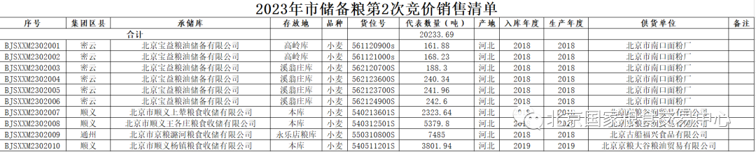 (清单 简版)2023年北京市储备粮油第二次竞价交易会
