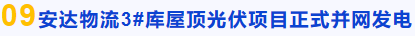 2月13日上午9时,安达物流公司组织合肥供电公司、施工方、设计及质量监督单位和相关部门,组织开展3#库屋顶光伏发电项目施工验收工作,经实地察验建筑工程和设备按照情况,安达物流3#库屋顶光伏发电项目顺利通过施工验收,并正式并网发电。