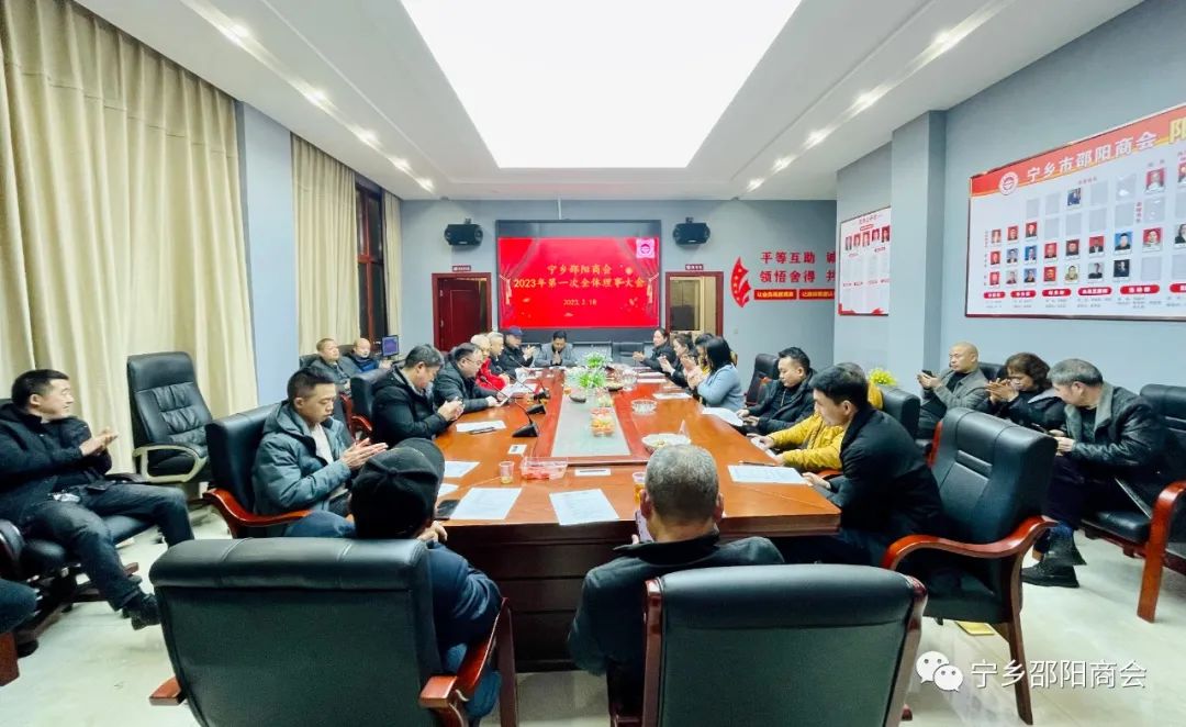 日月其迈,时盛岁新!2月18日,宁乡邵阳商会顺利召开2023年第一全体理事大会。会议由商会执行会长兼秘书长陈历良主持,商会党支部书记、会长汤铁红,执行会长贺超胜等常务副会长、副会长及理事等30余人参加会议。