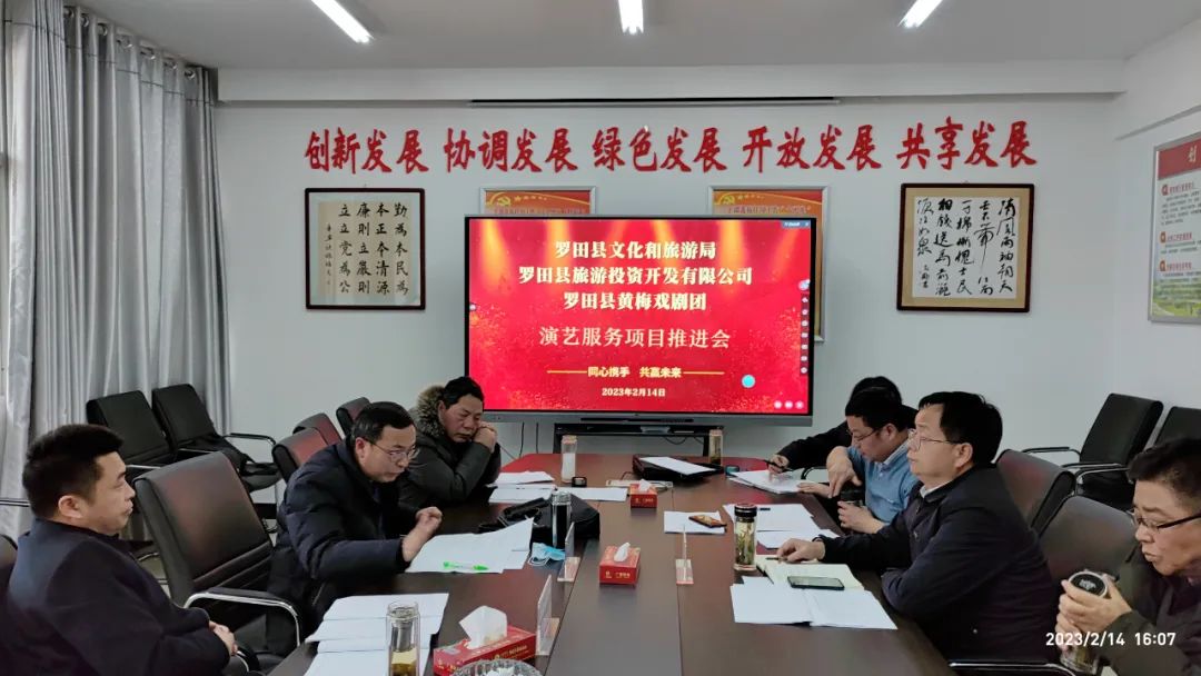 县旅游产业发展联合党委书记陈建到集团组织召开会议,专题研讨鸠兹古邑文旅休闲街区演艺服务相关工作,县文旅局负责人董德传、集团董事长杨天平、集团总经理康林涛、县黄梅戏剧团相关人员参加会议。