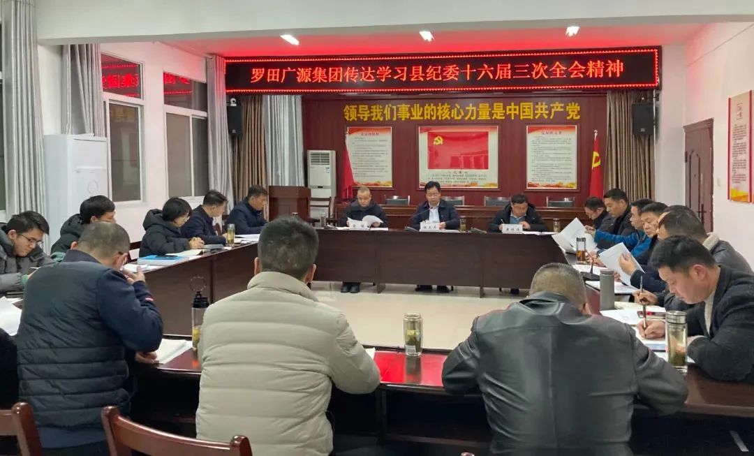 01.为深入学习贯彻县纪委十六届三次全会精神,团结带领集团党员干部职工奋发有为、迎难而上、砥砺创新,扎实做好各项重点工作,2月14日晚,集团召开专题会议,传达学习县纪委十六届三次全会精神。集团党委书记杨天平主持会议,集团领导班子成员、集团部室及子公司负责人参加会议。