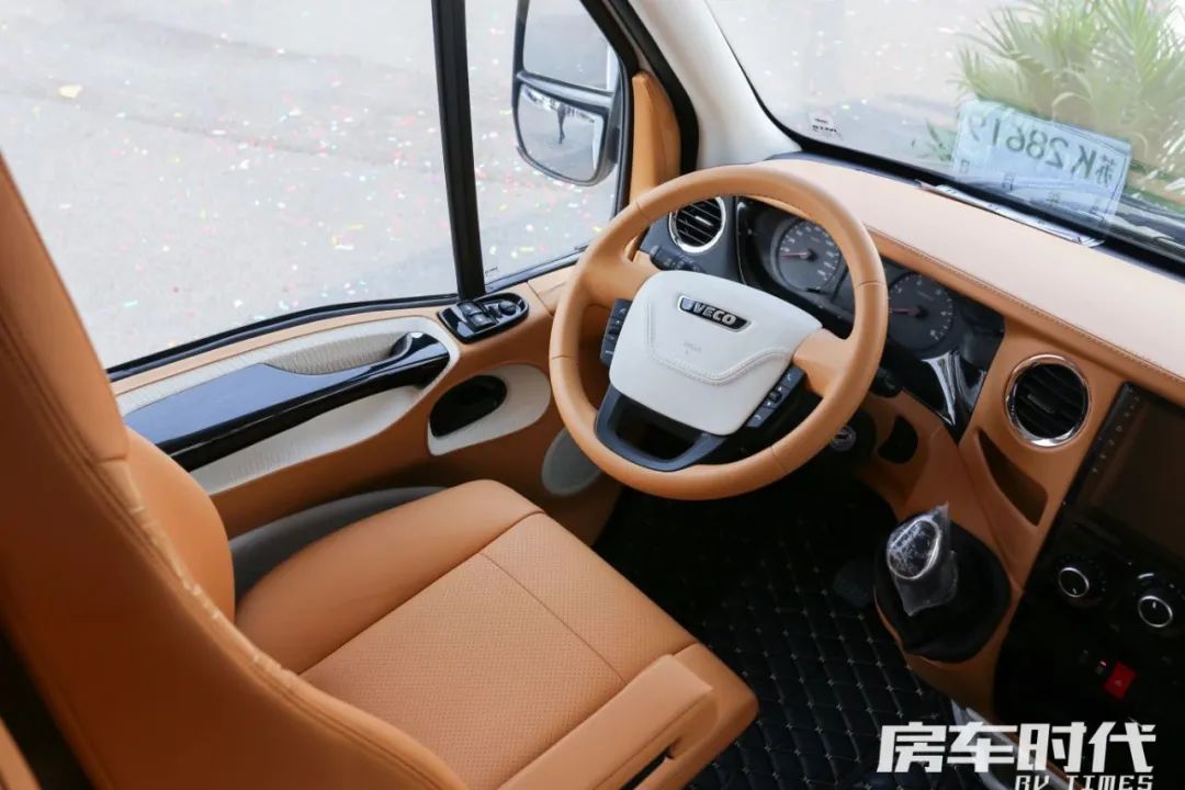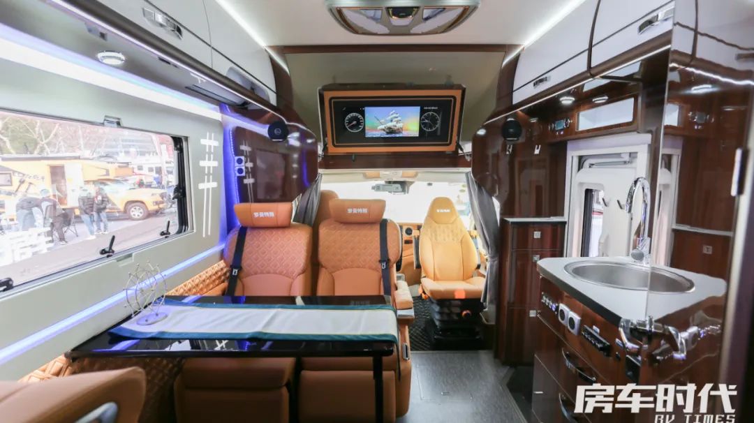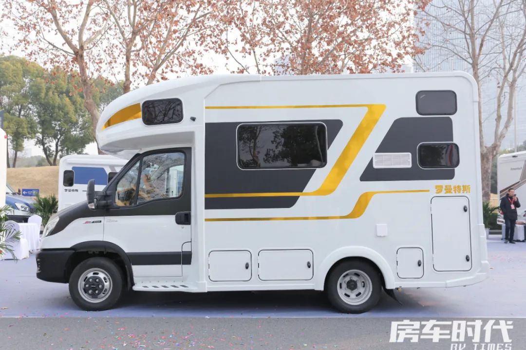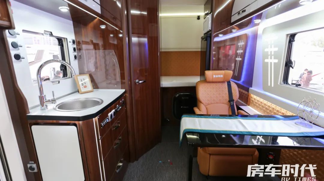展会闭幕日,让我们来到罗曼特斯的展位上看一款基于依维柯欧胜国六底盘打造的大额头无拓展车型,整车内饰典雅,定位高端商旅,车内采用了真皮内饰,质感十足,内部生活功能区分明,配置具备高实用性,并且拥有多个睡卧休息区,水电充足、续航优秀,能够同时满足多人出行的旅居需求,一起详细了解车型。