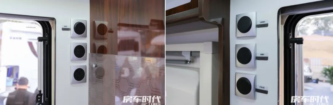 此外,会客区后方配置了一台英得尔152L专用12V冰箱以及韩国大宇微波炉,帮助快速制餐,前侧厢体设计了翘板开关总成,旅居体验更加轻松。