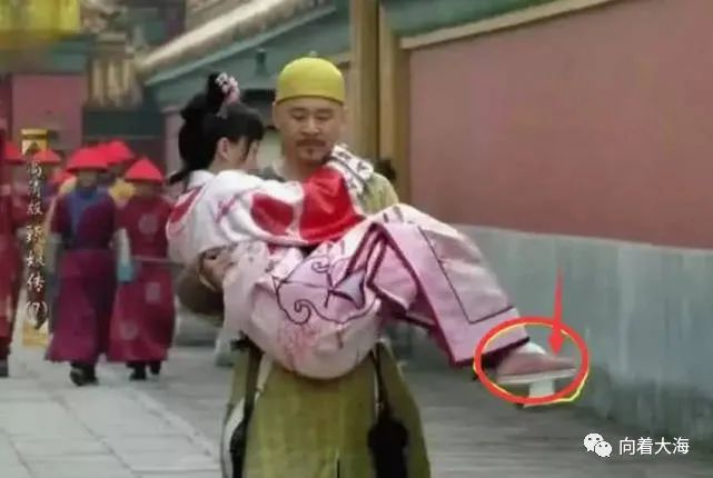 5.甄嬛被皇上抱着的这一幕了,请大家注意孙俪脚上的鞋子,没想到花盆底竟然是用胶水黏上的。