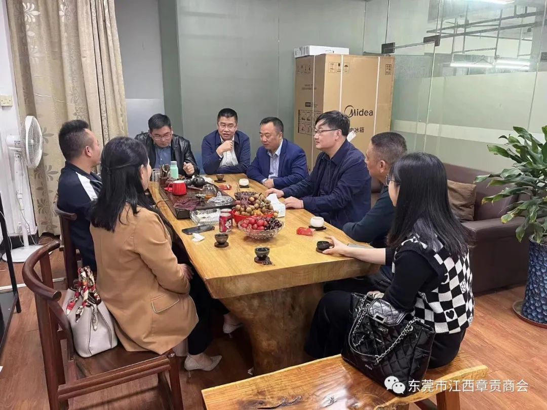 2023年2月17日,赣州市章贡区人大常委会副主任刘俊平,赣州市章贡区区委统战部副部长、区工商联党组书记刘汉林,浙江人文股份公司总经理姜伟梁,赣州市章贡区水西镇副镇长邱寒,赣州市章贡区工商联干部韩晓雪一行到访东莞,考察东莞市江西章贡商会监事长邓美华企业:广东海一科技有限公司,常务副会长曾庆裕企业:东莞市庆盛(SKY)服饰有限公司,常务副会长曾庆杰企业:东莞市京采服饰有限公司。参与接待的有我会执行会长邱发良,监事长邓美华,常务副会长曾庆杰、曾庆裕,会员谢忠平。