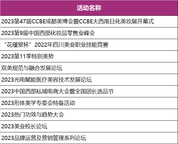 除了丰富且精细划分的展示区域外,CCBE组委会深知在过去一年美业人迫切想要破疫破局,重新回归“疫情前”的经营状况。为此,本届成都美博会我们特备了11场主题活动以及数十场展商自备的新品展示、技术打版、产品运营等活动。