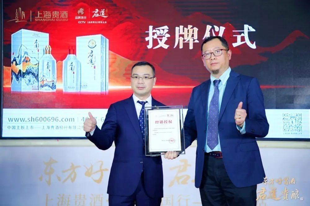 副会长余波作为上海贵酒君道贵酿在重庆的经销商上台致辞。