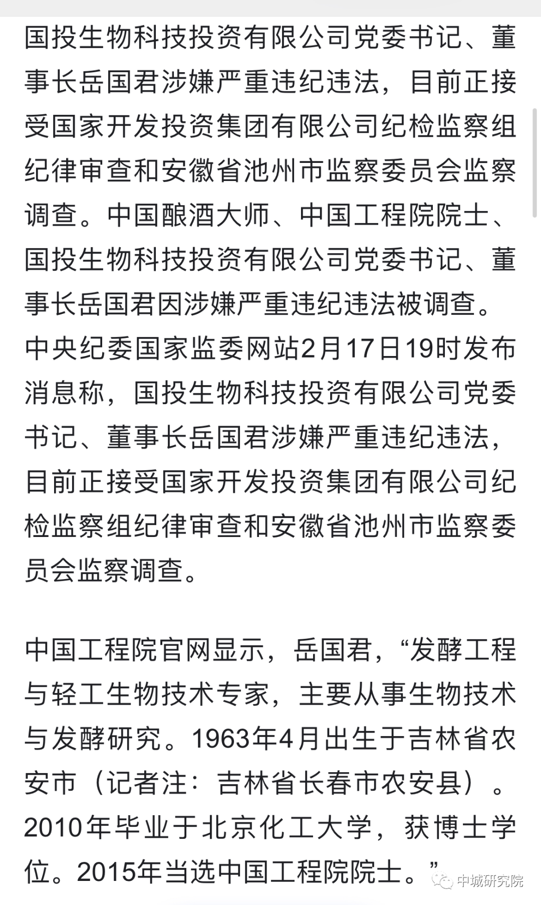 中国酿酒大师岳国君院士落马!系国投某公司党委书记