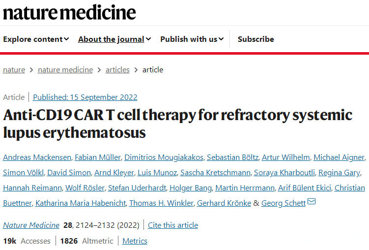2022年9月 | 红斑狼疮的CART细胞治疗