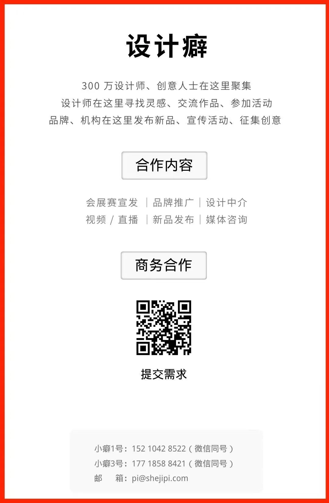 请参赛个人或团队将设计作品以电子邮件形式投递至hkwmb@sina.com,邮件标题统一为:投稿主题+投稿人姓名+投稿类型。除设计稿之外,应同时填写 2023年虹口区公益宣传设计大赛投稿报名表(一件设计稿需填写一张表格),与设计稿同时以附件形式发送。所有投稿应如实提供表内相关信息,如有信息不完整或存在虚报、瞒报情况的,投稿不予受理。2月19日 - 4月20日