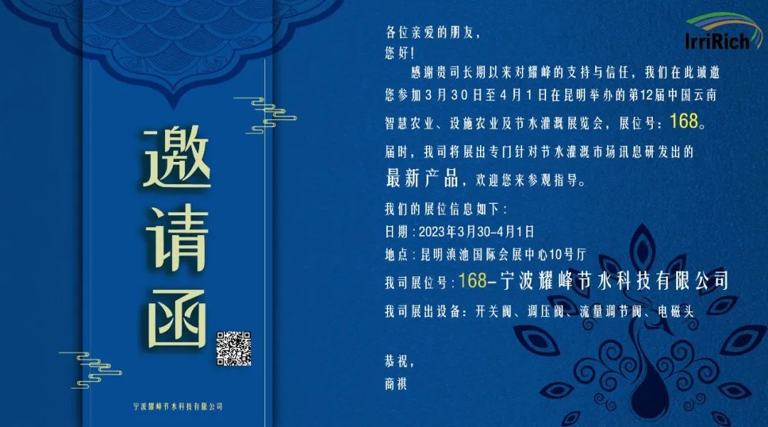 拥有45年生产与制造经验的宁波耀峰液压电器有限公司,涉足农业灌溉领域24年,并创立独立品牌IrriRich,且于2018年成立姊妹公司宁波耀峰节水科技有限公司。长期以来,在来自以色列欧美等国家品牌企业的支持下,IrriRich灌溉系列产品不断地精进生产工艺,积累了良好的市场信誉。