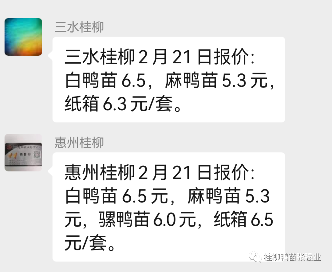 徐桂6.0;金晶6.05;粤桂6.5,麻鸭5.3;南宁桂柳6.5,麻鸭5.2,半番5.9;江西桂柳6.5,半番6.0;川桂6.6;惠州桂柳6.5,麻鸭5.3,半番5.9;种蛋3.6。